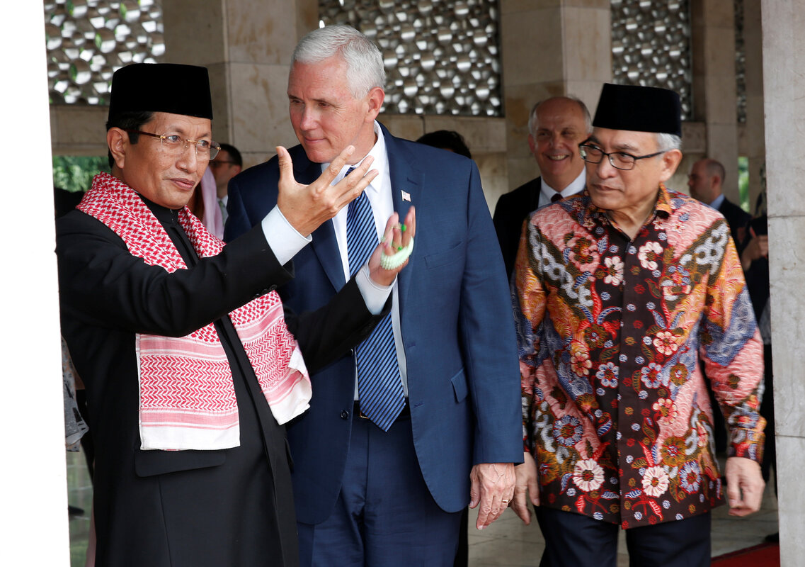 Pence tours Indonesian mosque, praises moderate Islam, and calls for ‘fairer trade’