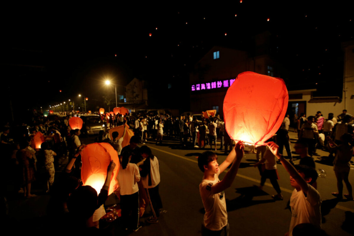 In the lead-up to the exams, students took part in incense-burning ceremonies to pray for good luck. They also released into the sky floating lanterns inscribed with "gaokao" messages.