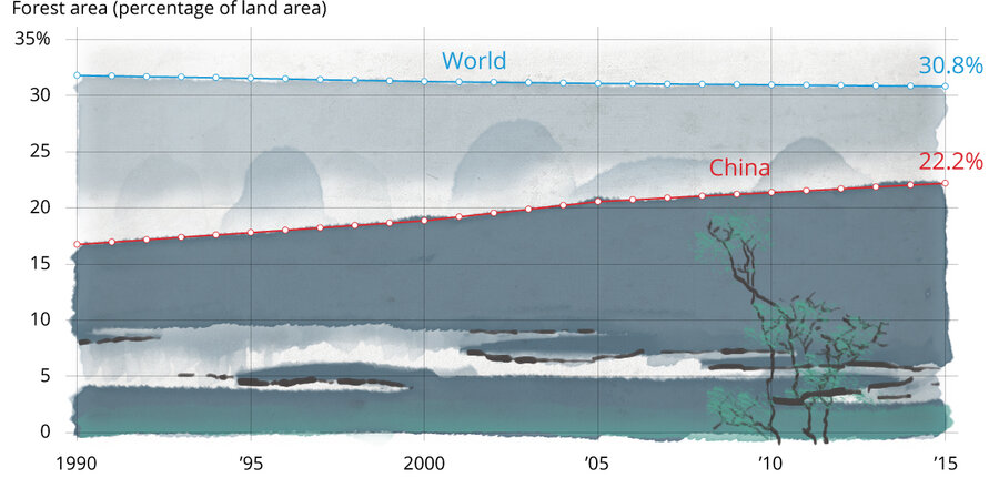 Much of China鈥檚 forest expansion comes from the Grain-for-Green program. Launched in 1999,听the program has funded the reforestation of 31.8 million hectares, an area slightly larger than New Mexico, according to the State Forestry Administration.听And the work isn鈥檛 over.听In March, Premier Li Keqiang promised the government would restore 800,000 hectares of marginal farmland into forest and grassland, an area larger than Delaware.