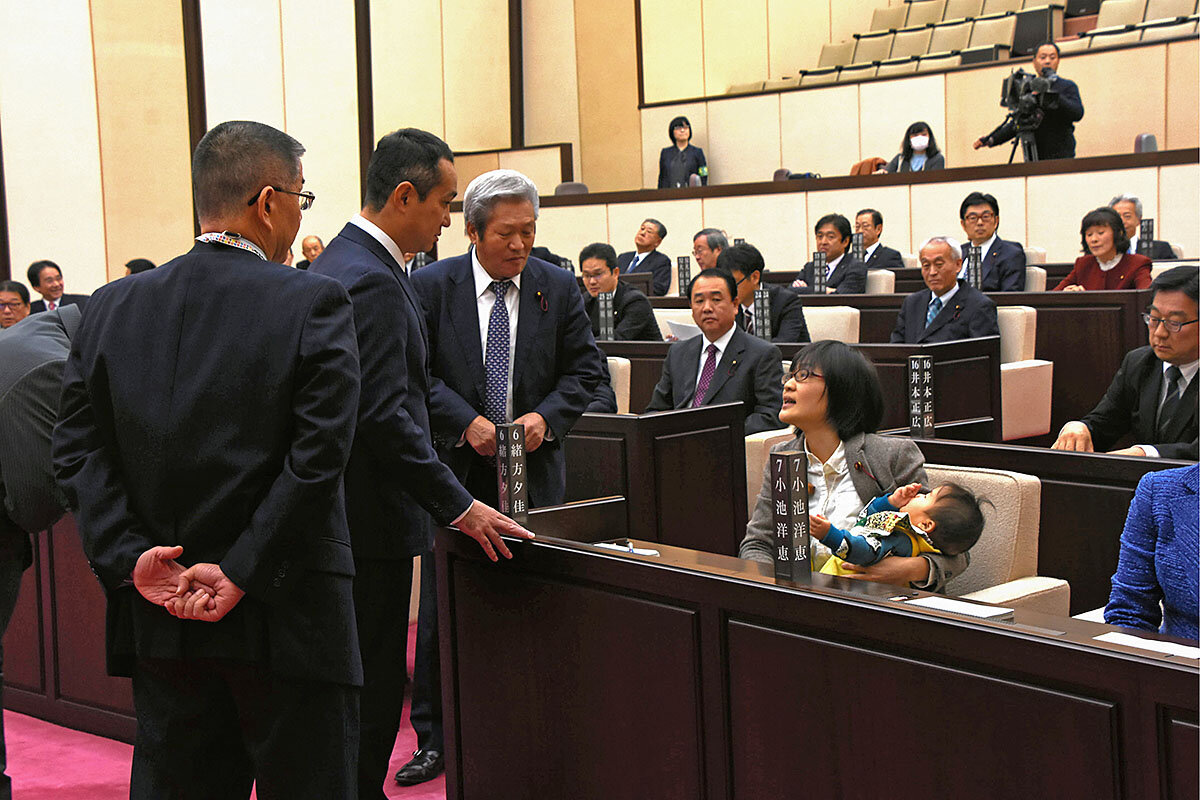 Like Ogata, Ayumi Miyazato is a city council member in southern Japan 鈥 and a new mother. Unlike Ogata, however, she was able to take her 3-month-old baby to the assembly this fall, which provided space for childcare during meetings.