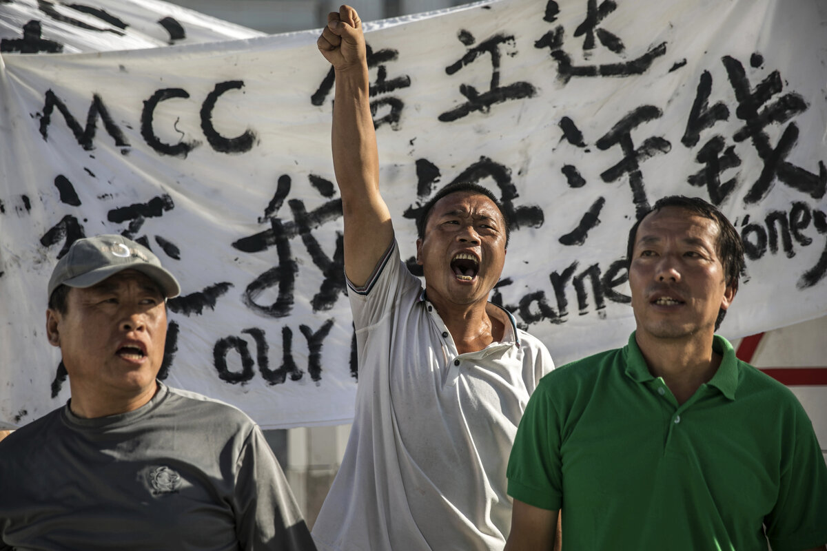 "I've been waiting a year to be paid," said Xu Longcai, a farmer from northeast China. "I borrowed so much money to come here. But I don't have a single cent 鈥 how can I go home? I can't pay what I owe."