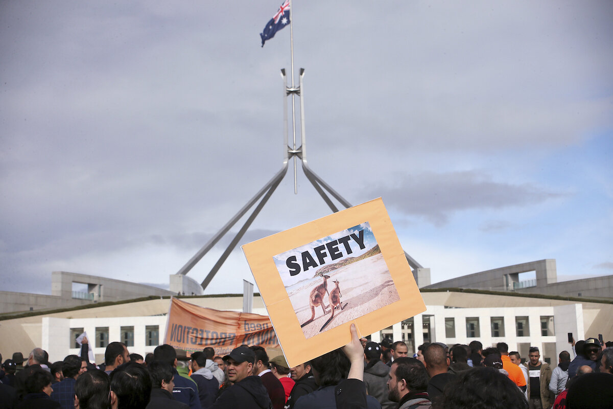Hundreds of protesters rallied outside Australia's Parliament House on Monday, saying they wanted to highlight the uncertain futures of many refugees since the government replaced permanent protection visas with temporary visas.