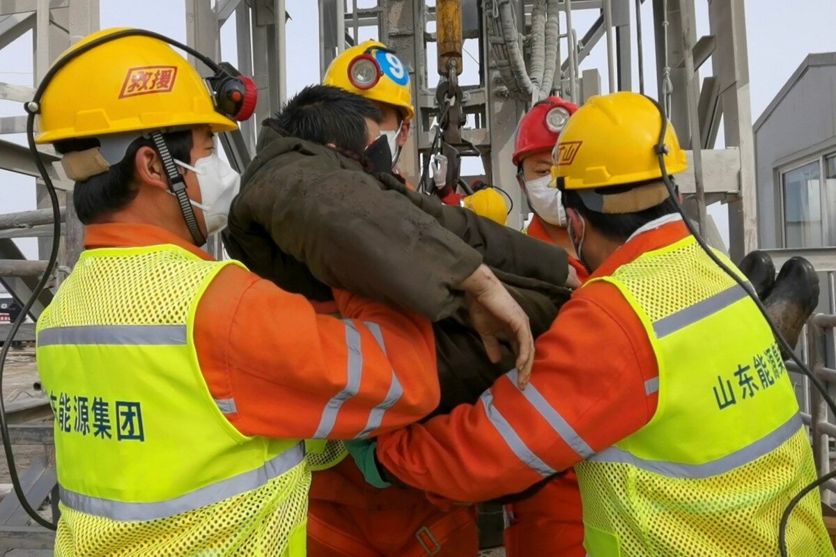 Hundreds of rescue workers and officials stood at attention and applauded as the workers were brought up from the mine in Qixia, a jurisdiction under Yantai in the eastern coastal province of Shandong.