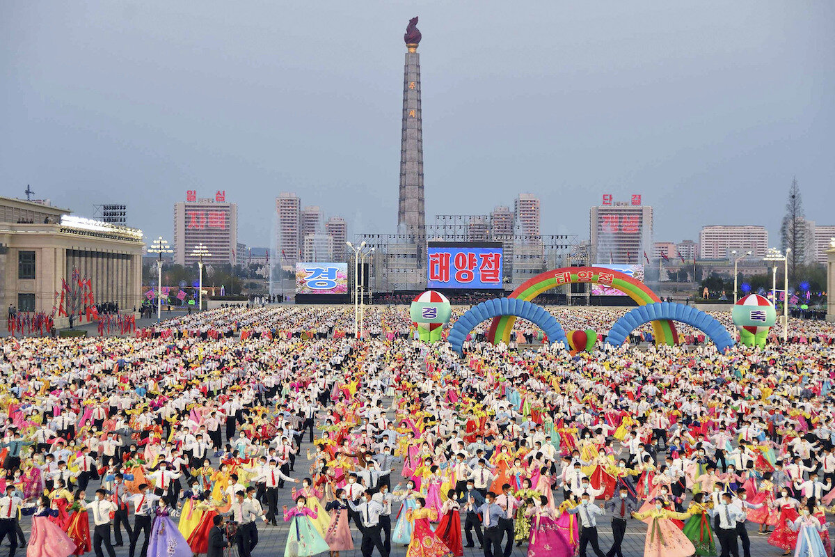 State TV later showed thousands of young people 鈥 men dressed in Western-style white shirts and women in colorful traditional Korean garb 鈥 dancing in a Pyongyang plaza as fireworks launched from a nearby river bank lit up the night sky. The dancers circled a group of performers who held up yellow flowers to form the symbol of the Workers鈥 Party of Korea 鈥 a hammer, brush, and sickle.