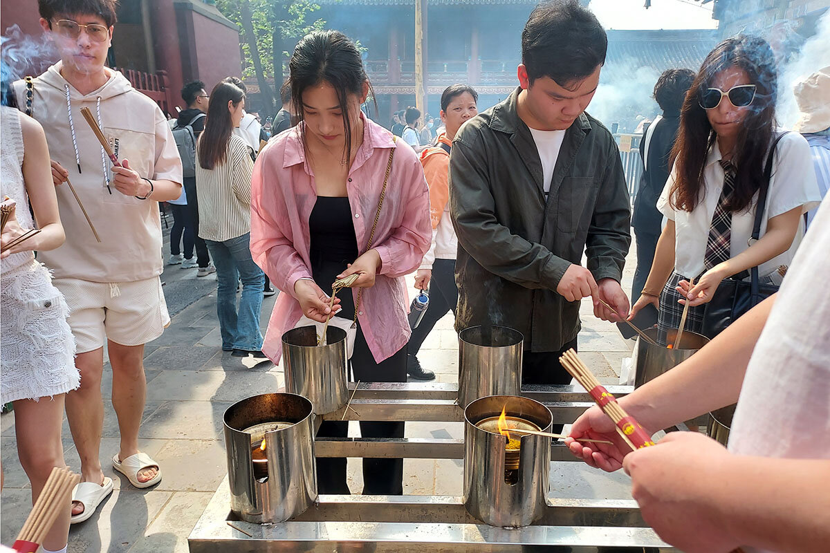 鈥淎 lot of young people here are praying to the Buddha to help them find work,鈥 says Qian Ninan, a college student from Inner Mongolia, adding that she hopes her petitions before the temple鈥檚 many Buddhas will smooth her own career journey.