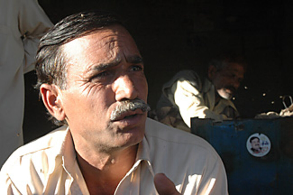 In the village of Chandni, where rickshaws give way to tractors and fields of cabbage press up against back doors, Mohammed Tariq takes a break from sawing an old stump for firewood. "We don't have any soft spot for PML-Q because we are laborers and they have given us nothing," he says. "They have offered benefits only to the bigwigs.