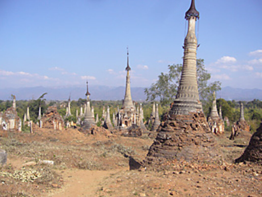 Out of the motorized canoe, through a bamboo grove, up wooden stairs to the jungle, and there they are 鈥 thousands of stupas and shrines of Indein Village, their pinnacles rising into a cloudless sky.