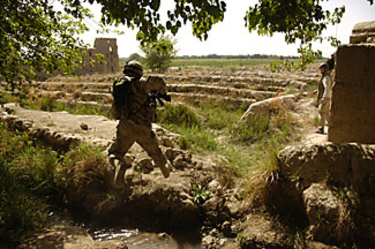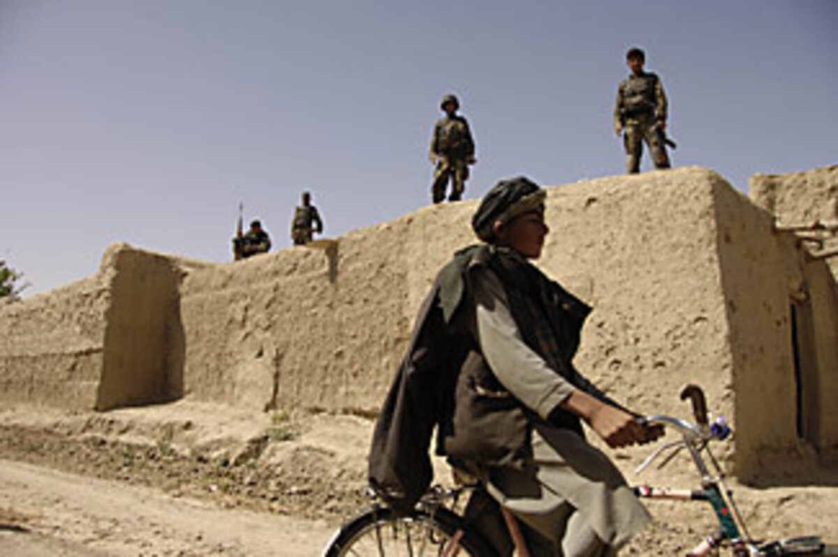 It is just after dawn when the Afghan soldiers creep into lush fields splashed with morning light. Their job is to turn back an insurgency whose members lurk among the grapevines, almond trees, and red-flowered poppy fields that border their military compound. Today, that means stopping a stream of attacks that has disrupted supply routes here in Kandahar Province, in the troubled southern reaches of Afghanistan.