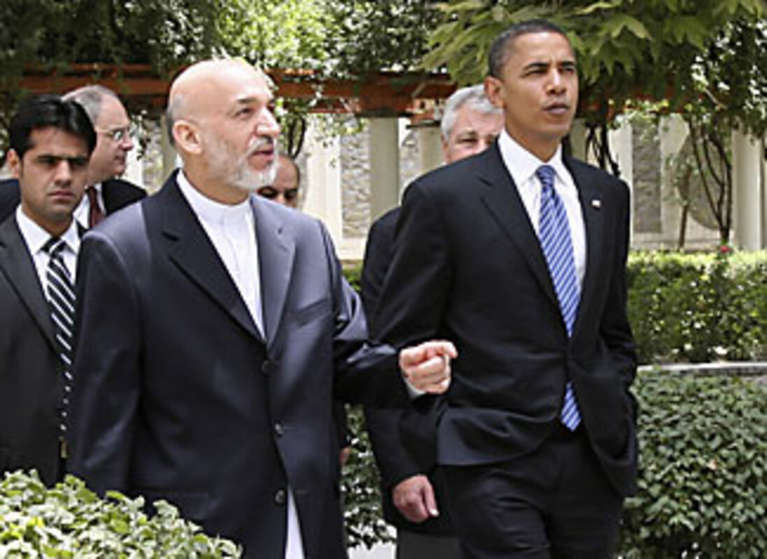 After breakfast with troops on Sunday, Obama met with Afghan President Hamid Karzai, whom the senator criticized this month for having "not gotten out of the bunker" to help organize the country.