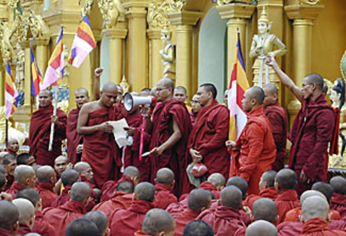 This new focus comes with a price, however. Authorities have cracked down on the monk movement, arresting many of the leaders of last year's protests. Earlier this month, intelligence agents raided a monastery in Rangoon, Burma's main city, and arrested a senior monk. The government also recently derobed ABMA leader U Ashin Gambira and plans to try him on sedition charges.
