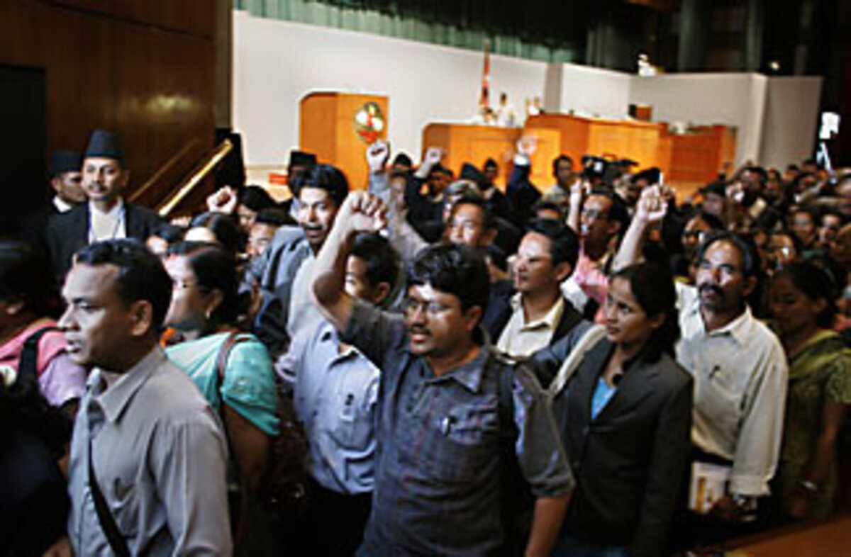 Maoist lawmakers 鈥 many of them former rebels 鈥 stormed Nepal's parliament on Monday to block a vote for a new prime minister.
