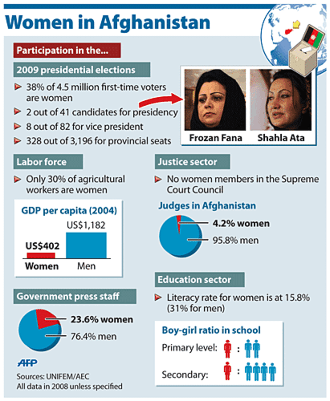 On the campaign trail, both Karzai and candidate Ashraf Ghani have reached out to women voters with special women's rallies. Thousands attended Karzai's rally in Kabul Thursday in which he claimed credit for opening girls' schools. Karzai also appointed the country's first female governor as well as female ministers.
