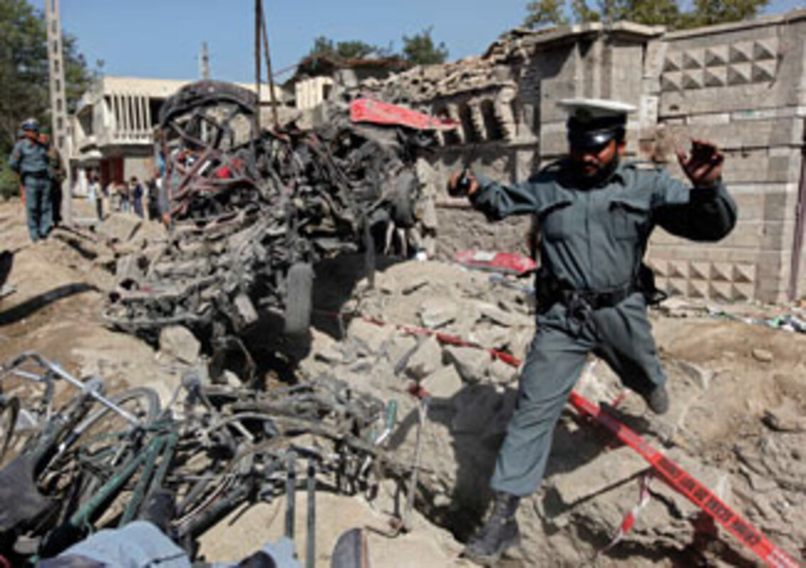 A suicide car bomb exploded outside the Indian Embassy in Kabul Thursday morning, killing 17 people and wounding dozens more.