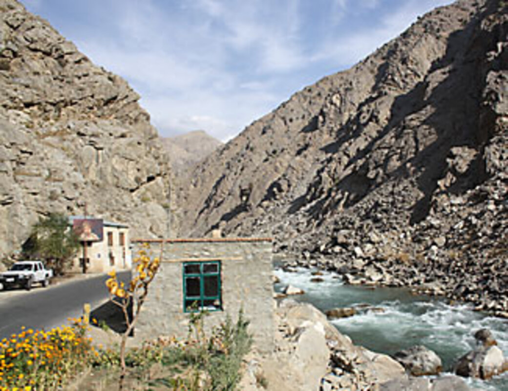 Two hours north of Kabul, armed guards stop and register all vehicles before allowing entrance to the Panjshir River gorge. Barren mountains press in close, leaving room only for the road and the river, which even in late autumn sends mighty emerald swells over the boulders.