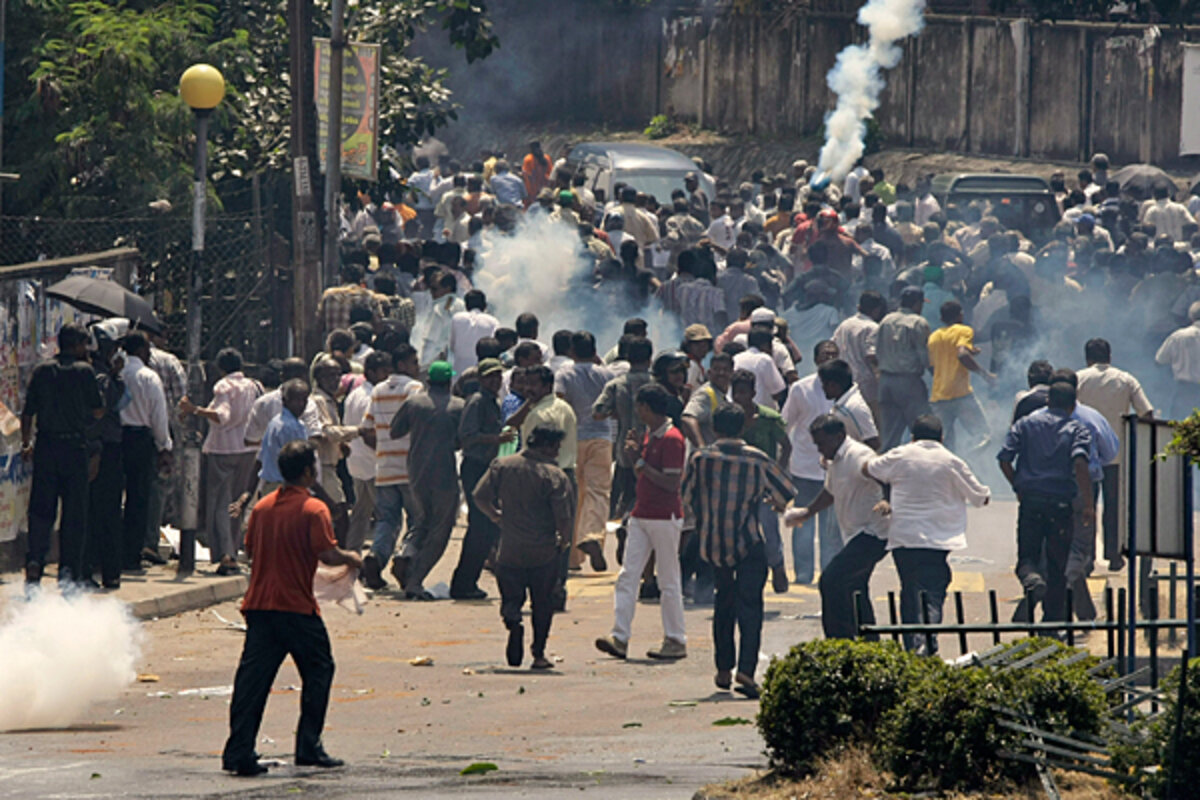 Thousands of protesters gathered in the capital Colombo and fought briefly with smaller groups of government supporters before police fired tear gas and water cannons to disperse the crowd. Opposition politicians had earlier called for nationwide protests against the treatment of their candidate and vowed to contest his detention at a military compound.
