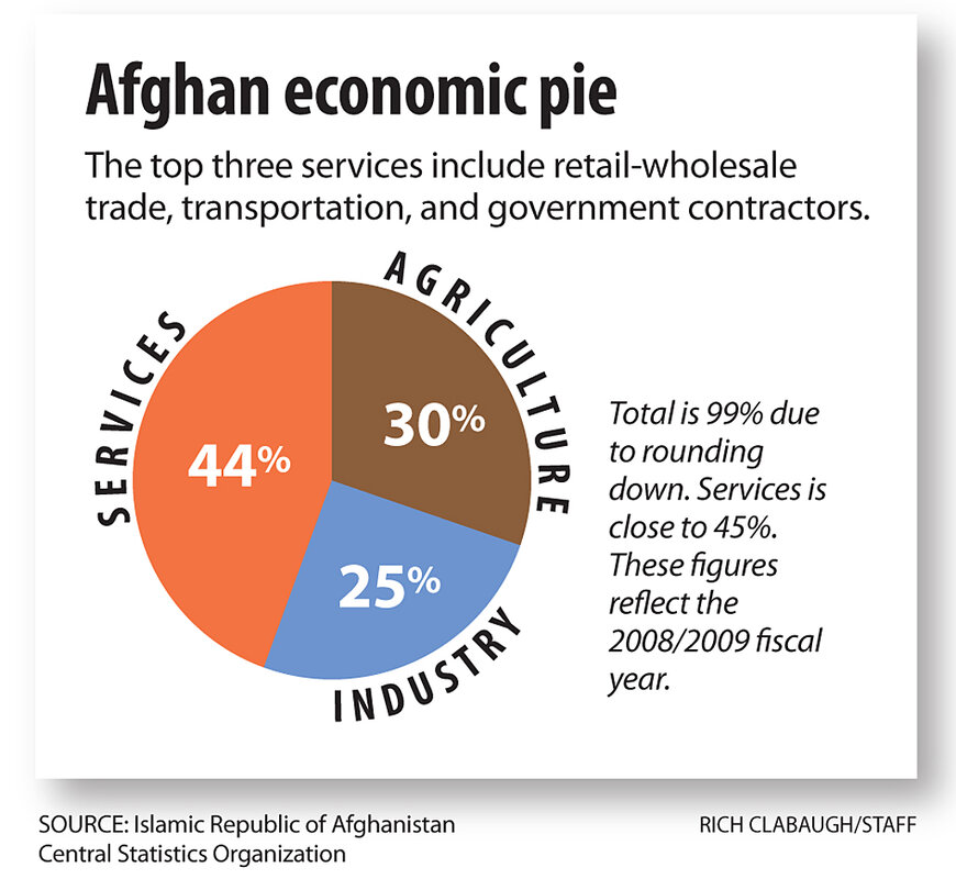 But improvements made in agriculture can be applied across the widest swath of the country. "The most likely areas of improvement are in the agricultural sector because more than 40 percent of people in Afghanistan are busy in this sector," says Abdullah Saleh, an analyst with the Afghanistan Investment Support Agency.