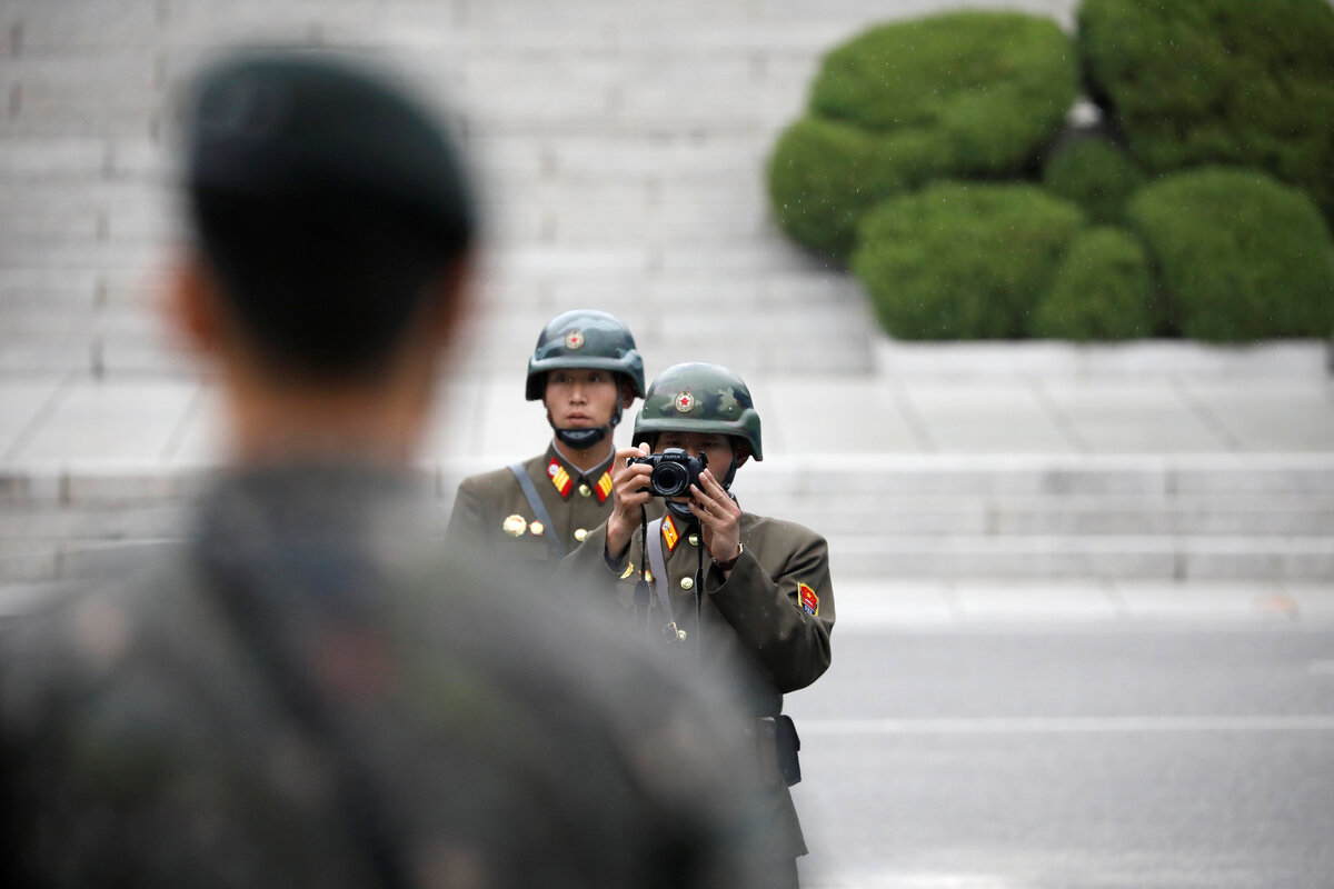 The unannounced visit聽Monday聽at the start of his 10-day trip to Asia was a US show of force that allowed the vice president to gaze at North Korean soldiers from afar and stare directly across a border marked by razor wire. As the brown bomber jacket-clad vice president was briefed near the military demarcation line, two North Korean soldiers watched from a short distance away, one taking multiple photographs of the American visitor.