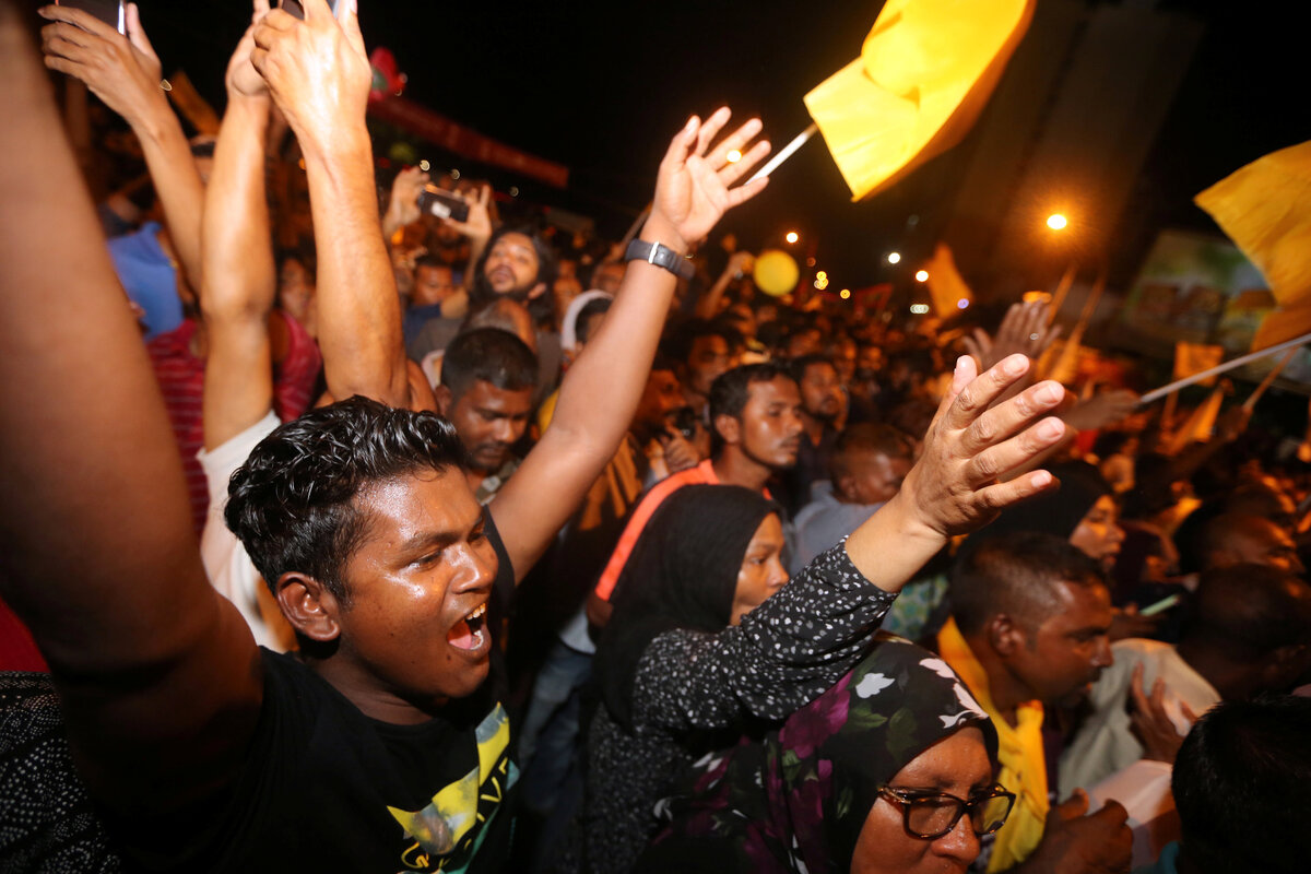The win was unexpected, and Mr. Solih's supporters flooded the streets, hugging one another, waving the Maldivian flag, cheering and honking horns in celebration. The opposition had feared the election would be rigged for strongman President Yameen Abdul Gayoom, whose first term was marked by a crackdown on political rivals, courts, and the media. Mr. Yameen did not concede, and his campaign couldn't be reached for comment.