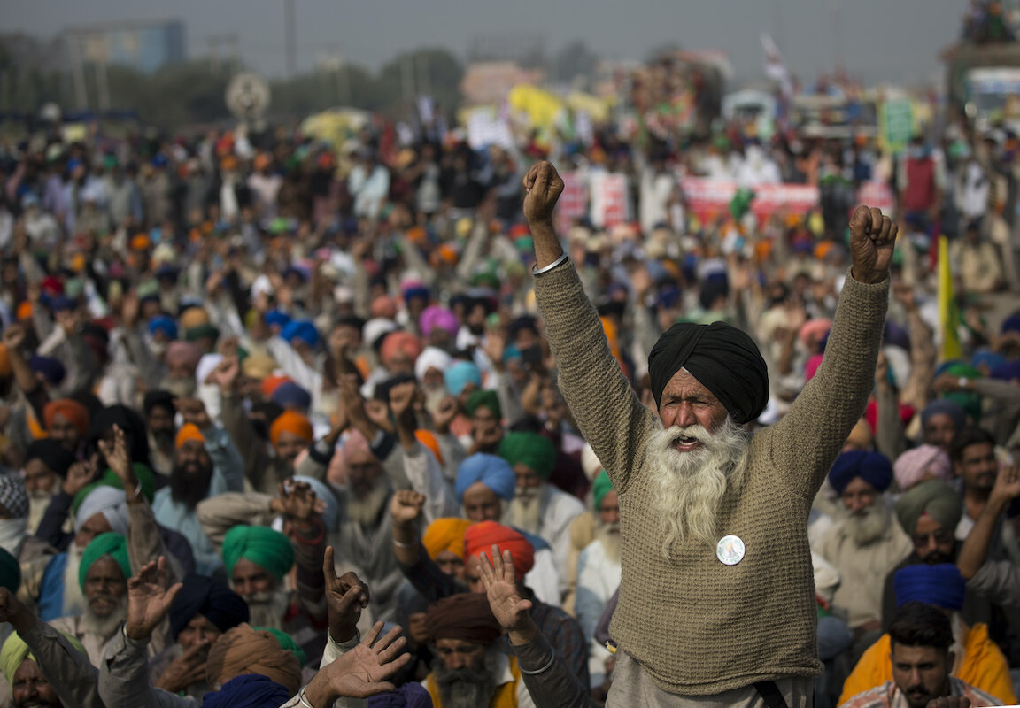 The perpetually busy arterial highways that connect most northern Indian towns to this city of 29 million people now pulse to the cries of 鈥淚nquilab Zindabad鈥 鈥 鈥淟ong live the revolution.鈥 Tens of thousands of farmers with distinctive, colorful turbans and long, flowing beards have descended upon the city鈥檚 borders, choking highways in giant demonstrations against new farming laws that they say will open them to corporate exploitation.