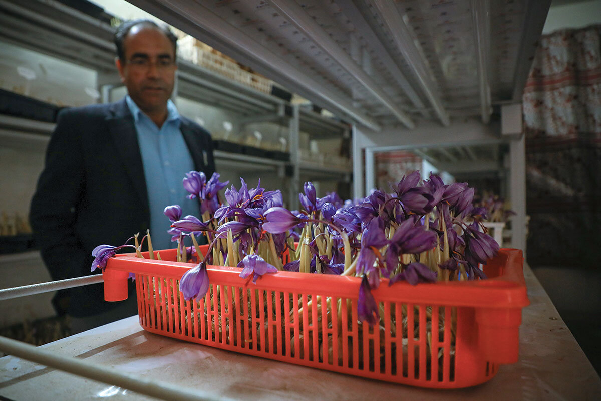 The sheltered flowers bloom as usual, and after the saffron is harvested, he puts the corms back in the soil.