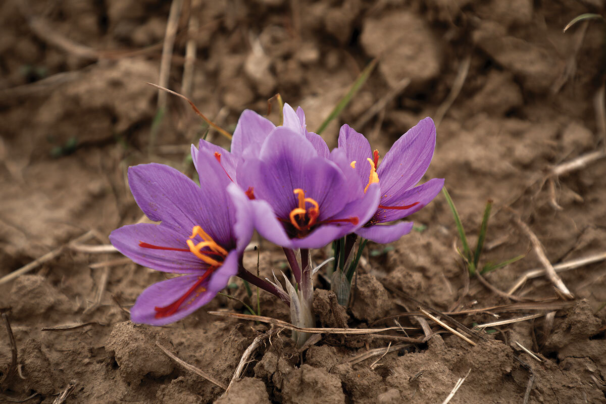 Traditional farmers plant their saffron corms, or bulbs, in the fall. The saffron crocuses should bloom the following November, at which point farmers can pluck its flower and harvest the bright red stigma. This cycle repeats for about 3 to 5 years before the original corm decays, leaving behind new bulbs to be planted.