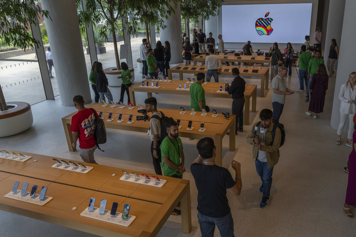 The company鈥檚 CEO, Tim Cook, posed for photos with a few of the 100 or so Apple fans who had lined up outside the sprawling 20,000-square-foot store in India鈥檚 financial capital, Mumbai, its design inspired by the iconic black-and-yellow cabs unique to the city. A second store will open Thursday in the national capital, New Delhi.