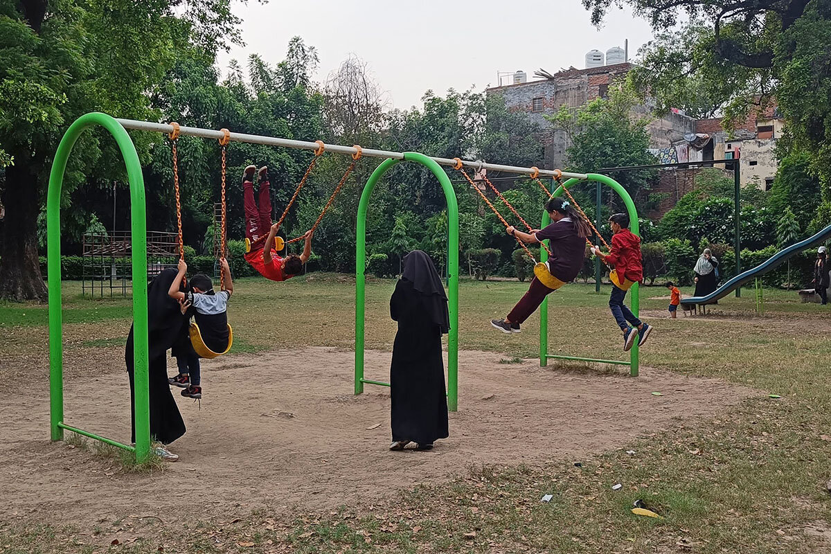 Dressed in a black abaya and teal sports shoes, she and her young cousins take turns riding the swing in the historic Old Delhi park reserved for women and kids. Built during the Mughal era, the park used to be frequented by elite Muslim women who observed the purdah tradition – being behind the veil at all times. Redeveloped as a women-only park in recent years, the lush green space is now a refuge where women of all religious backgrounds say they can be carefree.