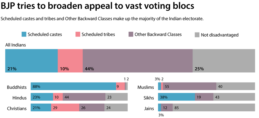 The BJP's Hindu nationalist and pro-business platform, for example, has traditionally made it popular among upper-caste Hindus. But under Mr. Modi's leadership, the BJP has worked to broaden its electoral appeal, leveraging welfare programs to target lower-caste voters. Mr. Modi himself comes from an OBC (Other Backward Classes) background 鈥 an official umbrella term for castes the government defines as educationally or socially backward 鈥 which has helped his party make significant inroads into a key voting bloc.聽