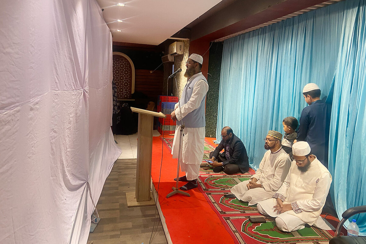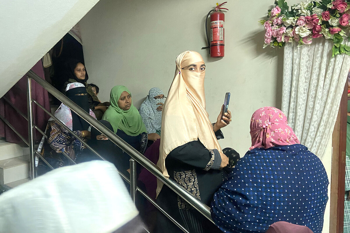 But none of these women were visible as Mr. Haque delivered a pep talk: A floor-to-ceiling sheet separated them from the candidate, who spoke into the fabric. When Mr. Haque left with his entourage, the women waited in their section of the room.