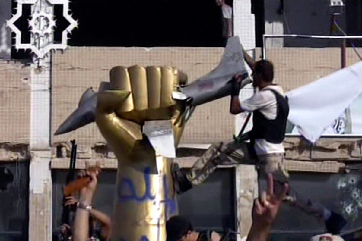 Al Jazeera has been carrying footage of jubilant fighters inside the compound trying to pull down a statue of a fist crushing a US jet. Reporters and Libyans on the scene said the pro-Qaddafi resistance appeared to have melted away in the sprawling neighborhood, and a frantic search for Qaddafi, who's ruled Libya with an iron fist for 40 years, has begun.