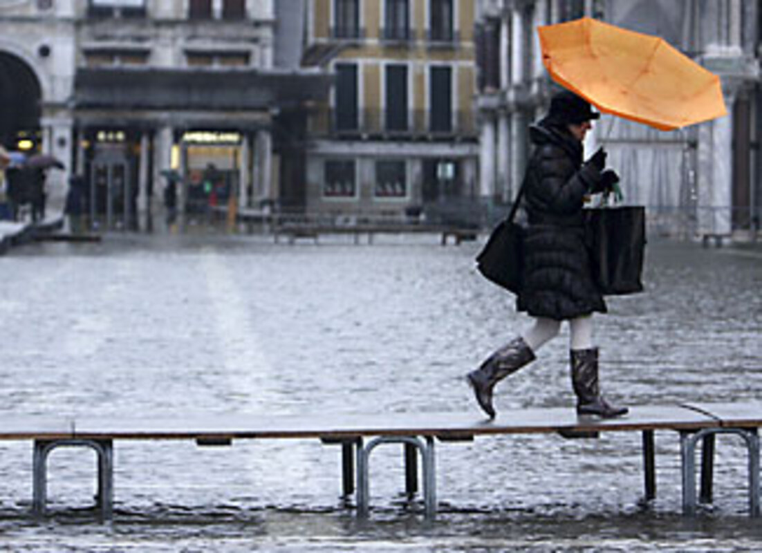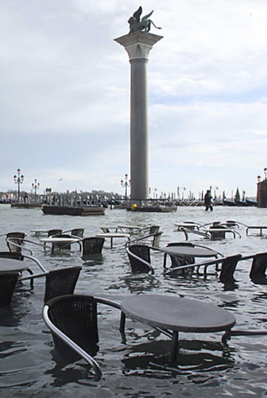 Last month, the worst flooding in 22 years caused the lagoon to rise more than 5 feet above normal, forcing tourists to bunker down in hotels and shopkeepers to put up sandbag barricades. One wakeboarder streaked across the waters that swamped St. Mark's Square.