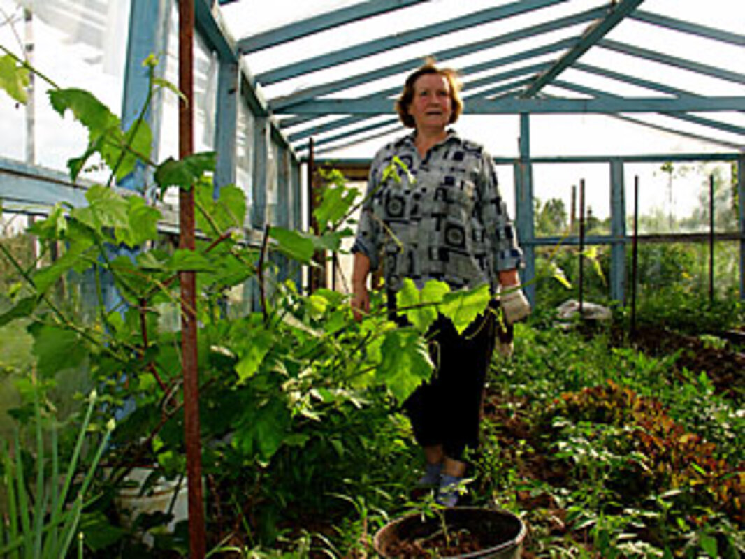 Ms. Kolbetskaya, a pensioner, spends every summer here. Though she says she loves gardening, it's more than just a hobby: She lives on what she coaxes from the reluctant, soggy soil. The produce also helps feed her daughter's family.