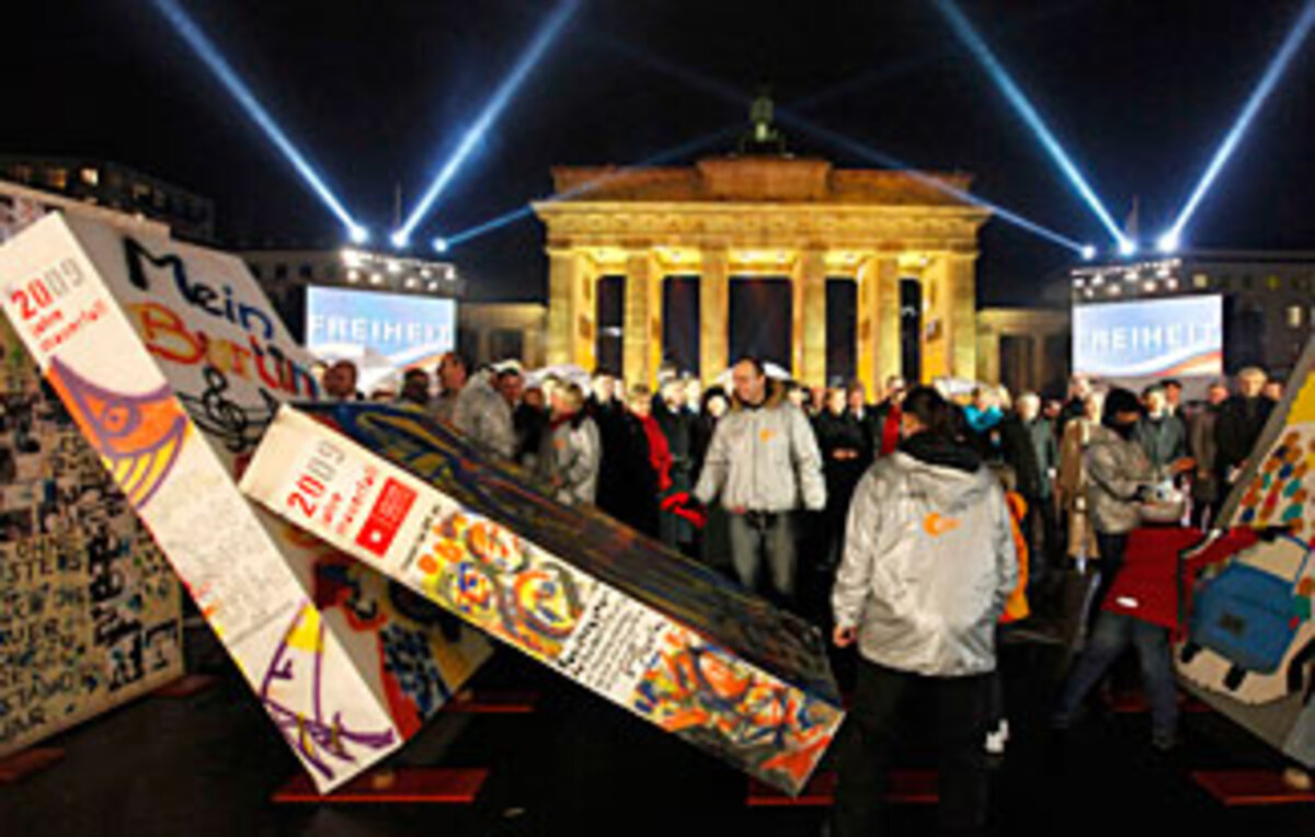 "They don't use the chance enough. The eyewitnesses are here, the places are here," says Anke Burmeister of Berlin, the mother of a 9th-grader who participated in the domino project. She fled eastern Germany through Hungary a few months before the wall came down. "The generation of my children is the first for whom it won't play a role."