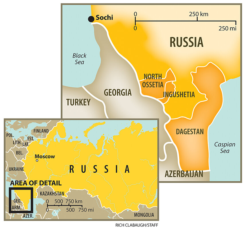 Sochi, a Black Sea resort town, sits on the western edge of the turbulent north Caucasus, and is bounded on the south by the breakaway Georgian statelet of Abkhazia 鈥 another potential source of instability.