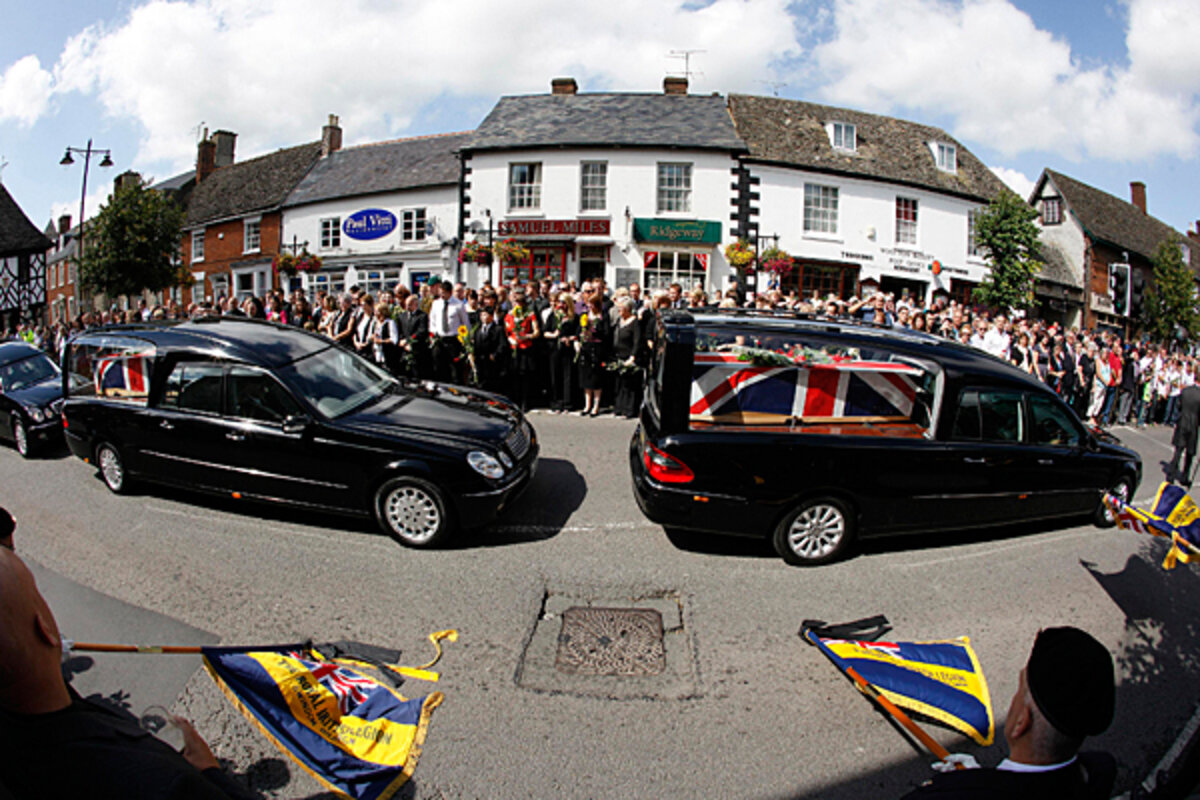 The scene became a familiar backdrop to the wars in Iraq and Afghanistan here: funeral processions slowly creeping through the market town of Wootton Bassett, met by a silent, dignified line of residents, heads bowed.
