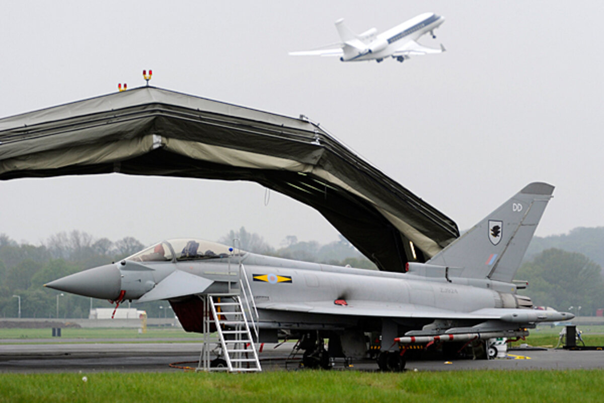 The nine-day Exercise Olympic Guardian security test involves coordinated air, land, and sea operations and helicopters, warships, troops, and four Typhoon fighter aircraft based at RAF Northolt in west London.聽The show of force is designed to test the responsiveness of antiterror plans developed by the Metropolitan Police, which will have 12,500 officers on the ground for the Games, backed up by 13,500 military personnel.