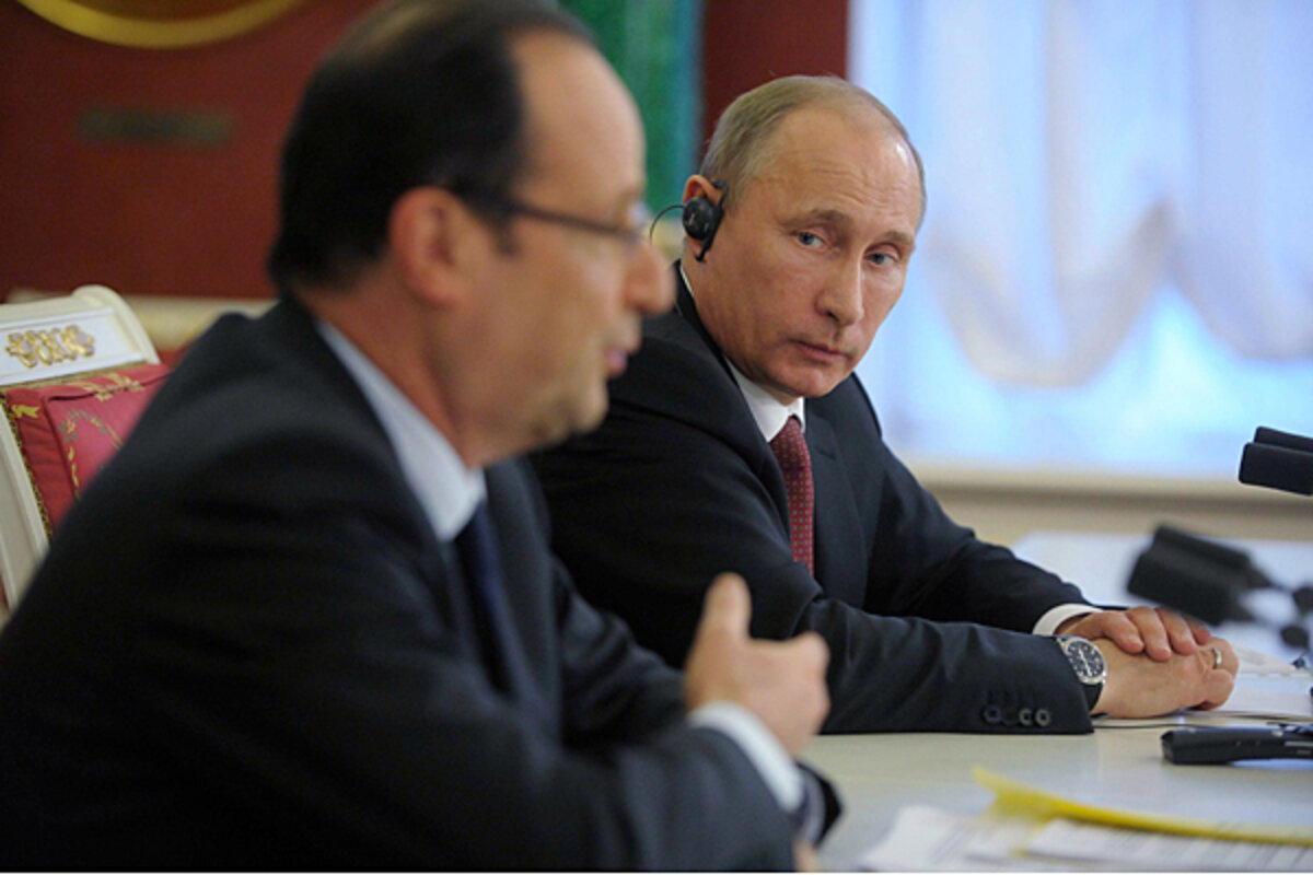 After meeting with French President Fran莽ois Hollande in the Kremlin yesterday, Vladimir Putin hinted to journalists that Russia and France are on the same page about the need to work together to promote "political dialogue that would involve all sides in the conflict."