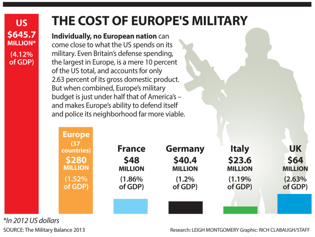 But the interventions in Libya and Mali have shown the limits of Europeans at the military helm. In Libya, the US ultimately provided 80 percent of aerial tankers, because of limited ally capabilities. Instead of instilling confidence that Europe can act without the US in the lead, military experts are increasingly worried about the holes and gaps that shrinking defense budgets and ambitions are creating.