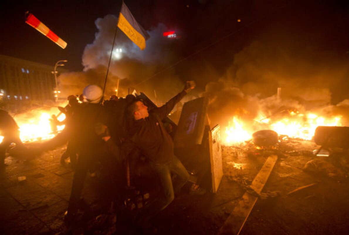 Riot police attempted to disperse the main antigovernment protest camps on Kiev鈥檚 central Independence Square, or Maidan, by throwing stun grenades, aiming water cannons on the crowds, and firing what appeared to be rubber bullets at demonstrators. Several protester tents caught fire during the conflict.聽