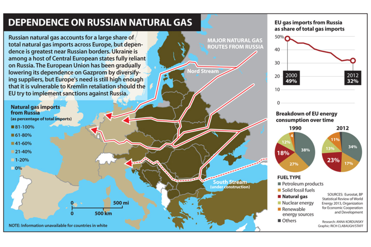 But that dependence is commutative: Russia supplies about 30 percent of the gas imports that the European Union needs to fuel its vehicles, heat its homes, and run its power plants. So cutting consumption of Russian energy is, at best, a painful proposition for Europe.