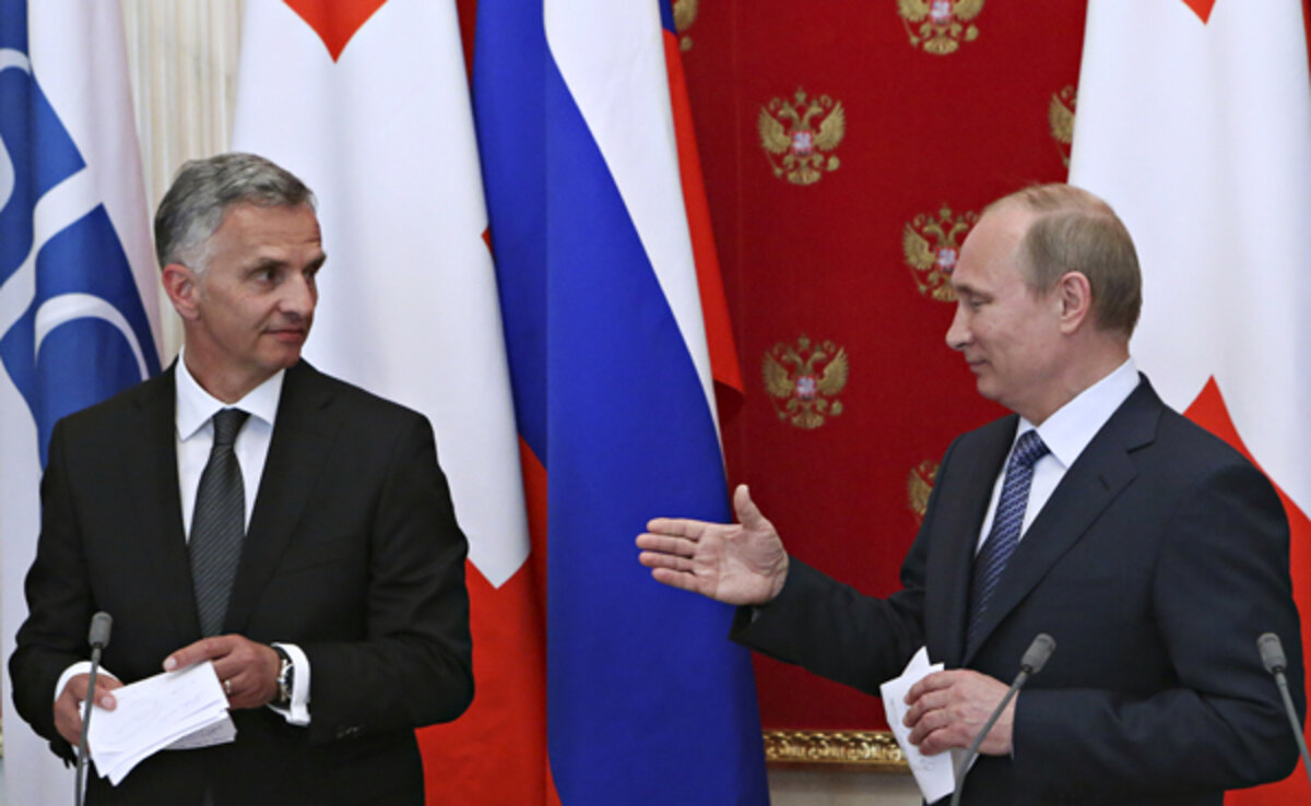 In with Swiss President Didier Burkhalter, who is also聽chairman of the Organization for Security and Cooperation in Europe (OSCE), Mr. Putin also insisted 鈥 as Russian officials have been doing 聽for more than a week 鈥 that Russia has long since pulled back its 40,000 troops from the Ukrainian border and is no longer threatening to intervene in the country's restive east.