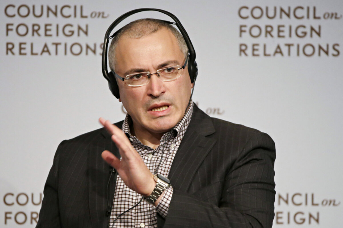 But as he stumps across the US to drum up support for his restarted Open Russia society, Mr. Khodorkovsky explicitly argues that the authoritarian state Mr. Putin has built, with its dependence on a single personality, is doomed. Like its two autocratic predecessors, both of which unexpectedly collapsed within the past century, Russia will soon face an emergency, says Khodorkovsky. And he pledges to step in and save it.