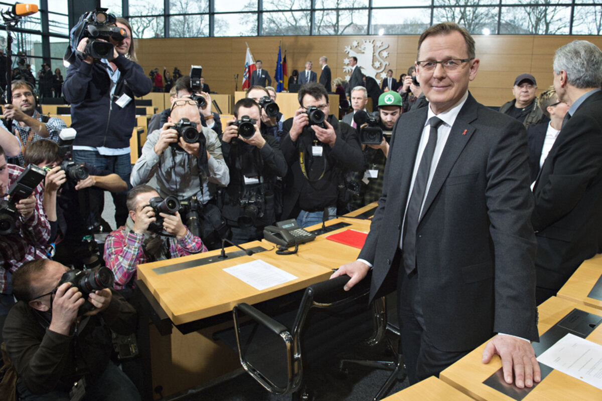 On Thursday night, at least 2,000 people gathered in front of the Thuringia parliament to say no to Mr. Ramelow.