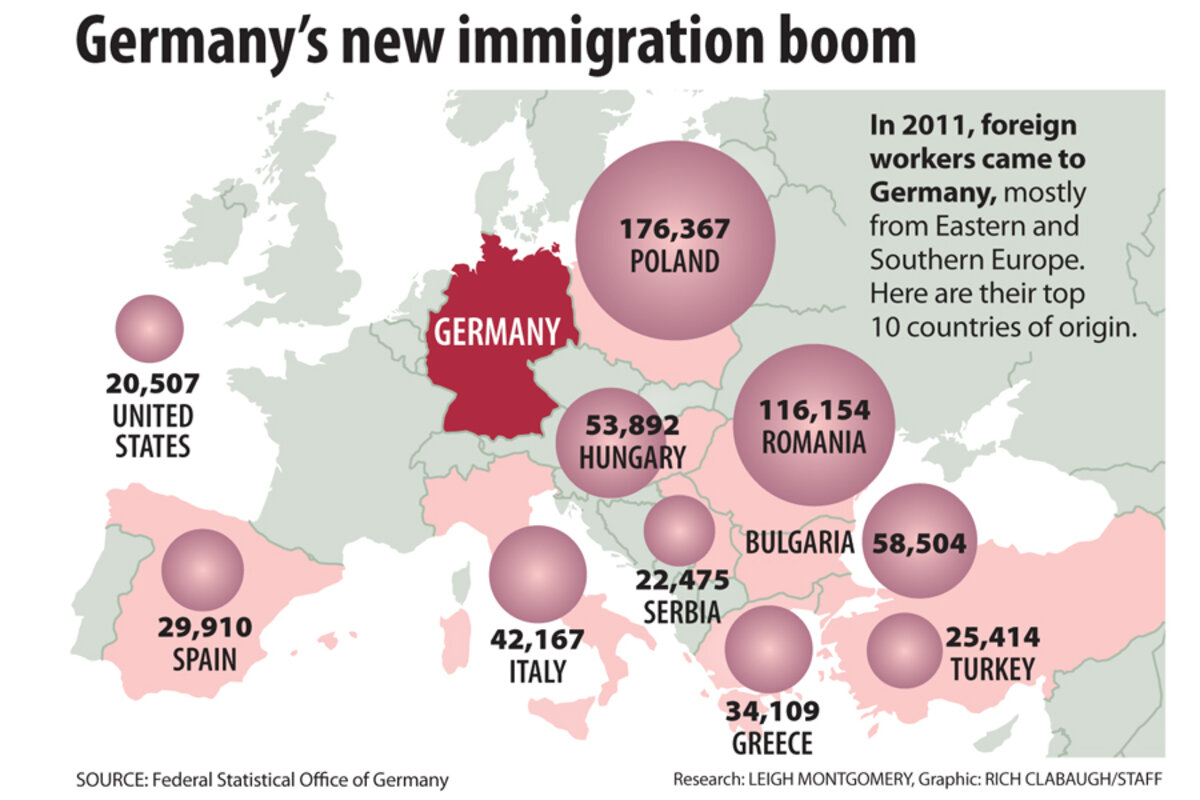 Today, under Chancellor Angela Merkel, Germany strikes the opposite tone. Two-thirds of the country鈥檚 new migrants are from the European Union, especially Poland, Italy, and Spain. But Germany is also trying to lure migrants from outside the EU, from India, China, Vietnam, and Indonesia 鈥 relaxing its immigration laws so much that it鈥檚 gone from having a closed-door policy to having one of the most liberal immigration policies in the world in less than 10 years, particularly the past two.