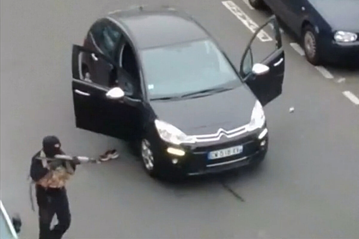 Today's viral home video by a witness to the attack on the Charlie Hebdo offices in Paris shows two shooters walking calmly towards their get-away car, before slowly driving away. Both were carrying large Kalashnikov-style assault rifles.