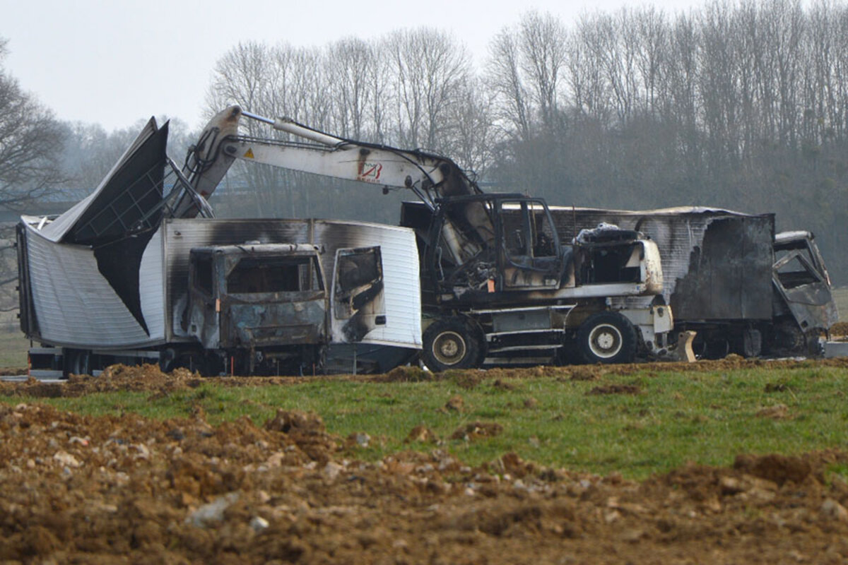 The perpetrators escaped in four cars and the two vans, which police later found burned and abandoned near the site of the attack, the official said. Forensic investigators in white suits examined the area around the charred vans amid vineyards in the town of Quenne.