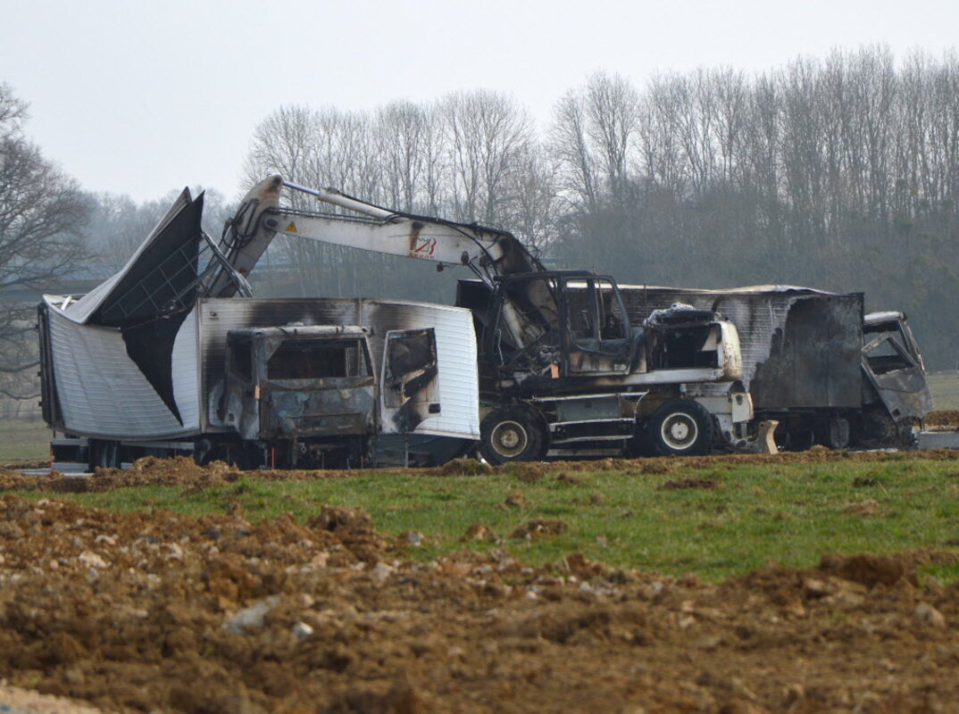 The drivers are being held for questioning by the Central Office for the Fight against Organized Crime, which is leading the investigation. The national police force are currently using an aircraft to search the Yonne region in Burgundy for the thieves and searching the scene for remaining forensic evidence.
