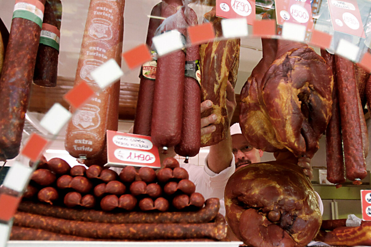 The group passes rows of sausages for every taste, including the coveted Winter Sausage by the company Pick Szeged 鈥 a product that Kutor swears every expatriate Hungarian dreams of. Behind the counter are thick slabs of bacon fat. 鈥淥ne of these will be in every pantry in Hungary,鈥 Kutor says. As summer approaches it will be sliced and roasted over fires the way Americans roast marshmallows.