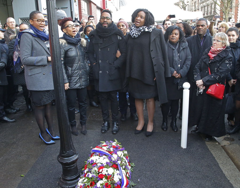 In other events to mark the first anniversary of January's bloodshed, French President Francois Hollande paid homage Saturday to a female police officer, Clarissa Jean-Philippe, who was killed by gunman Amedy Coulibaly in the Parisian suburb of Montrouge on Jan. 8.