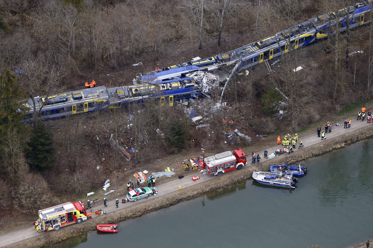 The regional trains collided before 7 a.m. on the single line that runs near Bad Aibling in the German state of Bavaria. Aerial footage shot by APTN showed that the impact tore the two engines apart, shredded metal train cars and flipped several of them on their sides off the rails.